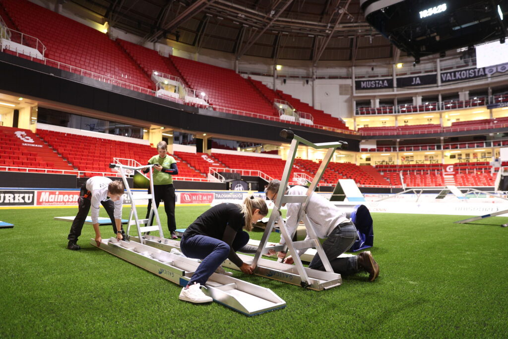 • Talkoolaisemme erottuvat joukosta uniikilla kisapaidalla.